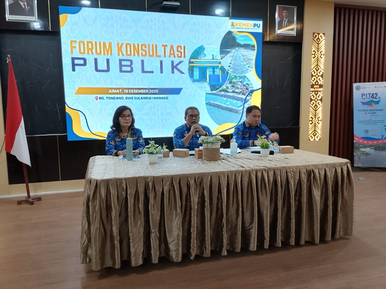 Mengatasi hal tersebut, BWS Sulawesi I mengadakan Forum Konsultasi Publik sebagai bagian dari pembahasan awal rencana pembangunan Bendungan Sawangan yang bertempat di Ruang Tondano BWS Jumat 19/12/25.