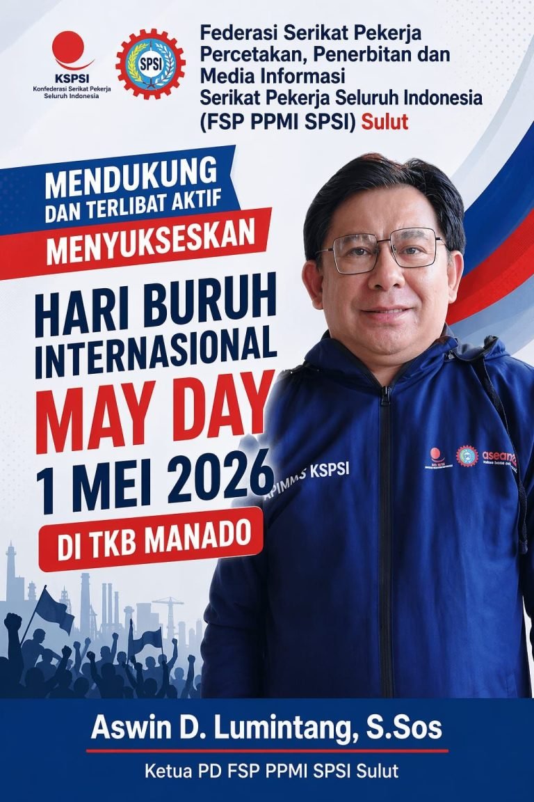 PILARBERITA.ID, SULUT – Pengurus Daerah Federasi Serikat Pekerja Percetakan, Penerbitan dan Media Informasi Serikat Pekerja Seluruh Indonesia (PD FSP PPMI SPSI) Sulawesi Utara (Sulut) menyatakan kesiapan penuh untuk menyukseskan peringatan Hari Buruh Internasional (May Day) yang akan digelar pada 1 Mei 2026.