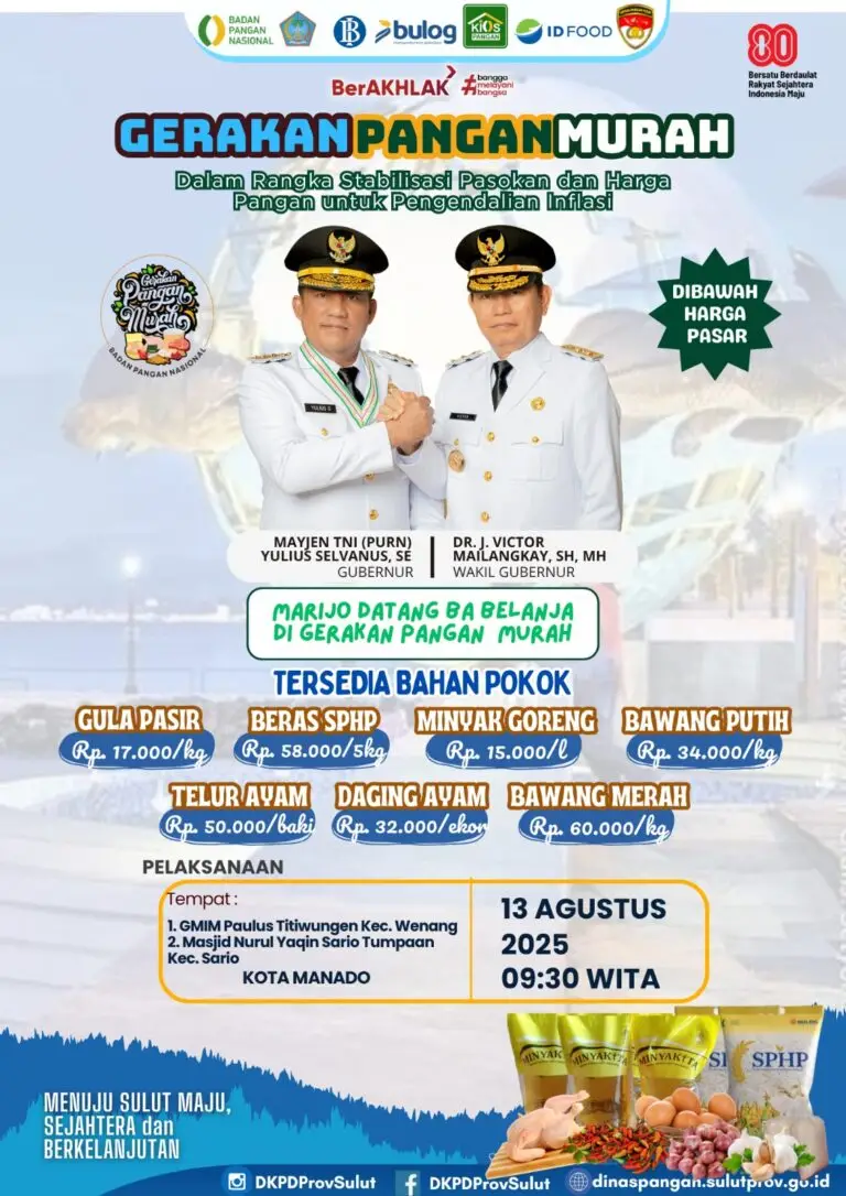 Program ini merupakan kerja sama Pemprov Sulut dengan Badan Pangan Nasional, Bank Indonesia, Bulog, Kios Pangan, dan ID Food, guna membantu masyarakat mendapatkan kebutuhan pokok dengan harga terjangkau.
