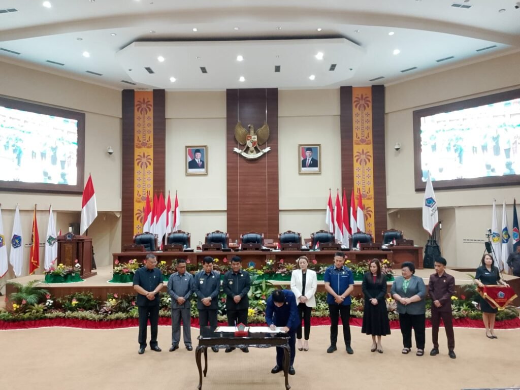PILARBERITA.ID, SULUT – Gubernur Sulawesi Utara (Sulut) Mayjen TNI (Purn) Yulius Selvanus (YSK), menghadiri Rapat Paripurna DPRD Provinsi Sulut dalam agenda pengesahan Rancangan Peraturan Daerah (Ranperda) tentang Kepemudaan serta Ranperda Perubahan atas Peraturan Daerah mengenai Pajak dan Retribusi Daerah, yang digelar pada Senin, 29/12/25.