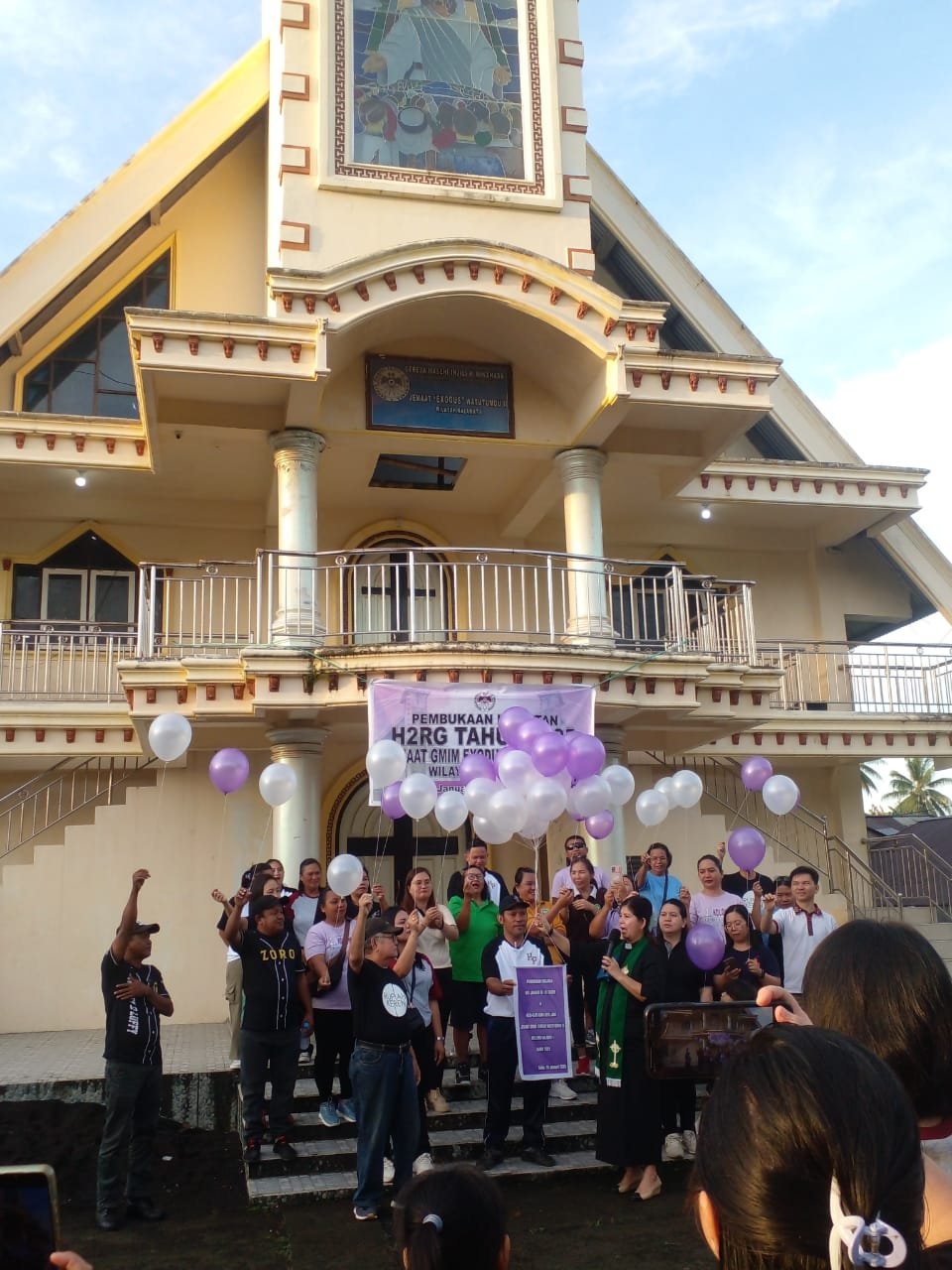 Ibadah ditutup dengan pelepasan balon berwarna putih dan ungu sebagai tanda bahwa kegiatan H2RG telah dibuka, dilanjutkan dengan jalan sehat dan senam line dance yang diikuti oleh seluruh jemaat yang hadir.