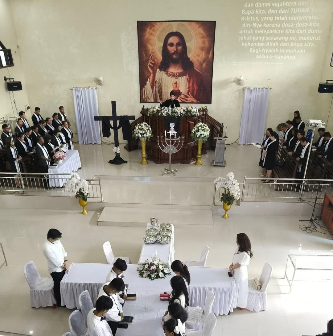 Ibadah dilanjutkan dengan Perjamuan Kudus dan diikuti oleh seluruh anggota sidi Jemaat yang hadir.
