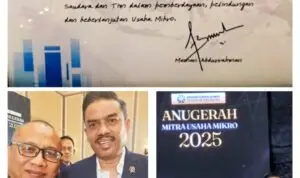 Penghargaan itu ditetapkan melalui keputusan yang ditandatangani langsung Menteri UMKM Maman Abdurrahman dan diserahkan dalam sebuah acara resmi di Menara Peninsula Hotel, Jakarta, Rabu 17/12/25.