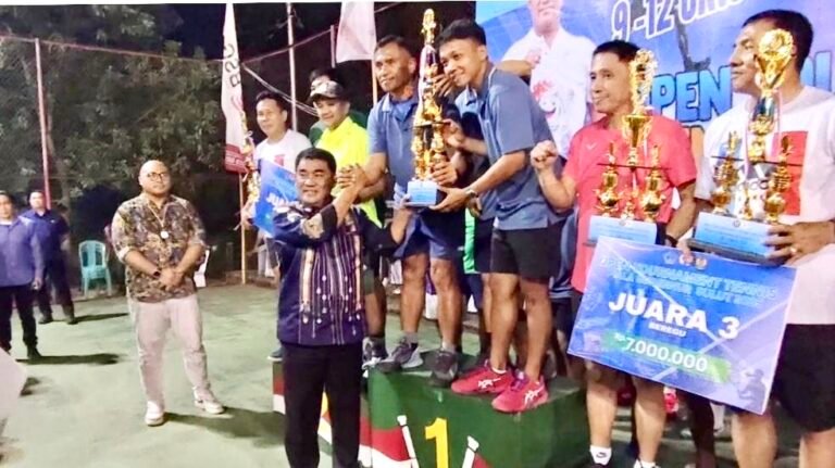 Penutupan turnamen Tenis Terbuka piala Gubernur dihadiri Wakil Ketua DPRD Provinsi Sulut Michaela Paruntu, Bupati Kepulauan Sangihe Michael Thungari, Kadispora Sulut Jemmy Ringkuangan, Sekdispora Sulut Rinny Mamahit,